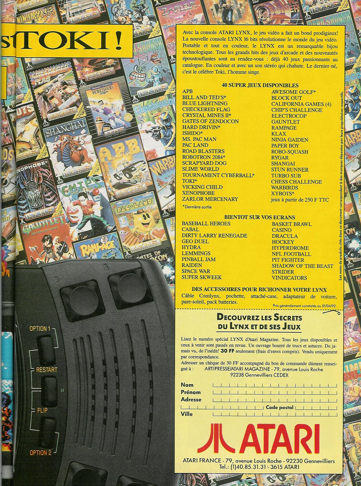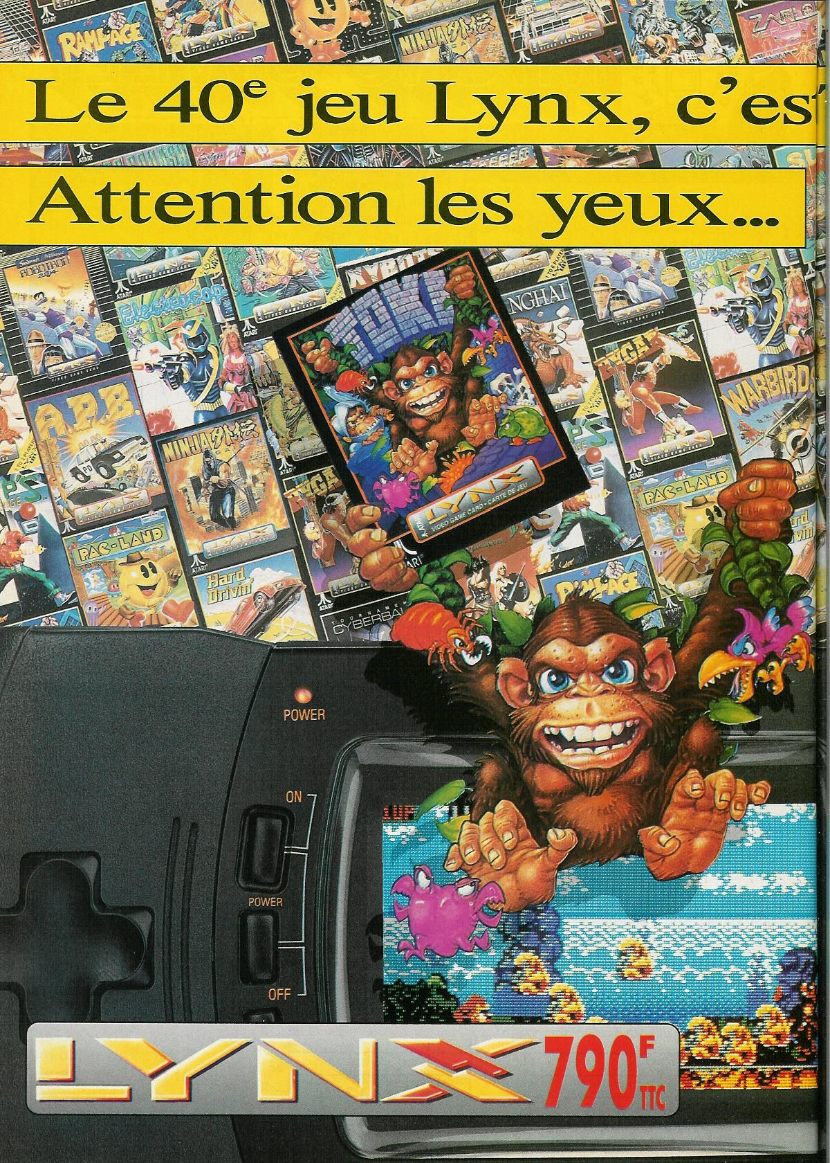 Quelques news ce mois-ci. Les meilleurs jeux du mois sont Mutation Nation (92%) sur NG, Snake’s Revenge (92%), Little Nemo et NewZealand Story (90%) sur Nes, Kid Chameleon (93%) sur MD, Rampart (95%) et Toki (94%) sur Lynx, Hudson Hawk (93%) Hook et Megaman 2 (90%) sur GB, Final Fight Guy (93%), et Ranma 1/2 (91%) sur SFC, WonderBoy 2 (92%) sur GG, Davis Cup (91%) sur PCE.