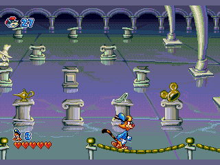 Développé par Designer Software pour le compte de Hi Tech Expressions sur Megadrive et SNES, Mickey’s Ultimate Challenge est sorti en février 1994 uniquement aux USA (développement terminé dès novembre 1993).
