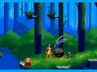 Développé par Funcom pour le compte de Disney Interactive Studios sur Megadrive, Disney’s Pocahontas est sorti entre août et septembre 1996 aux USA et en Europe. Il était prévu mais fut annulé sur SNES. La sortie du jeu concorde avec la sortie de la VHS européenne (octobre 1996).