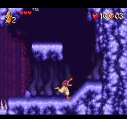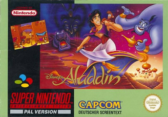 Développé par Capcom pour la SNES, Disney’s Aladdin est sorti en novembre 1993 au Japon et aux USA, en janvier 1994 en Europe. Le jeu n’atteint que 1,75 million de ventes dans le monde, bien moins poussé que la contrepartie de Sega et sorti bien trop tardivement en Europe.